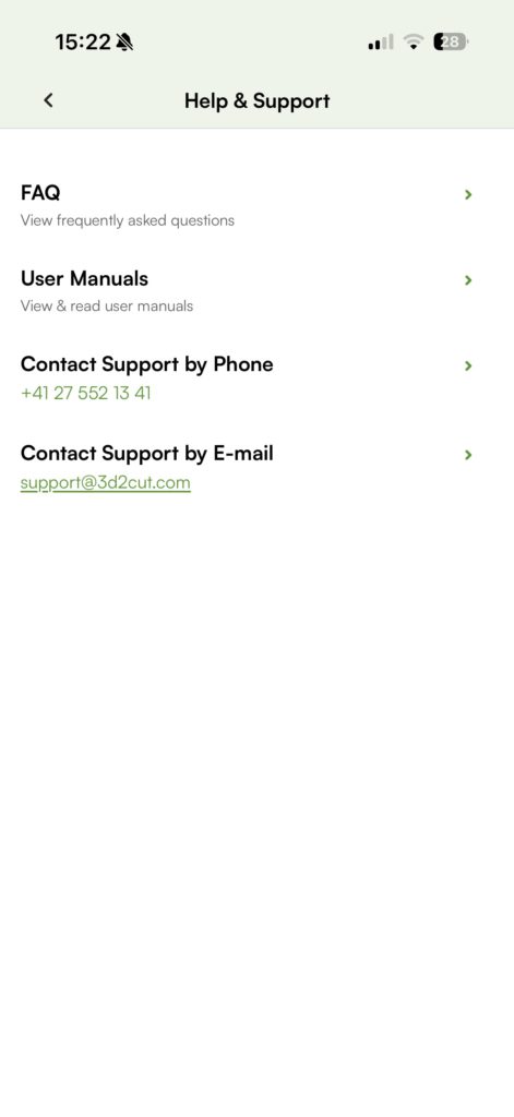 Help & Support Screen